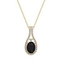 This Black Onyx and Diamond Necklace is casted in 14k Yellow Gold. This Women’s Halo necklace features exceptionally fine gemstones, on par with those found in the world's most exclusive boutiques and among the top 10% available globally. Teardrop-shaped Pendant Featuring A Prominent Oval Center Stone Surrounded By A Halo Of Smaller Round Stones. The Elegant Design Is Further Enhanced By Delicate Stone Accents Along The Double Row Bail. This necklace comes with a complimentary 18-inch chain. Enjoy the confidence of our 30-day, stress-free return policy—with return shipping fully covered. Each piece is also accompanied by a Lifetime Warranty, ensuring lasting beauty and peace of mind.