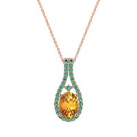 This Citrine and Emerald Necklace is casted in 14K Rose Gold. This Women’s Halo necklace features exceptionally fine gemstones, on par with those found in the world's most exclusive boutiques and among the top 10% available globally. Teardrop-shaped Pendant Featuring A Prominent Oval Center Stone Surrounded By A Halo Of Smaller Round Stones. The Elegant Design Is Further Enhanced By Delicate Stone Accents Along The Double Row Bail. This necklace comes with a complimentary 18-inch chain. Enjoy the confidence of our 30-day, stress-free return policy—with return shipping fully covered. Each piece is also accompanied by a Lifetime Warranty, ensuring lasting beauty and peace of mind.