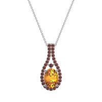 This Citrine and Garnet Necklace is casted in Palladium. This Women’s Halo necklace features exceptionally fine gemstones, on par with those found in the world's most exclusive boutiques and among the top 10% available globally. Teardrop-shaped Pendant Featuring A Prominent Oval Center Stone Surrounded By A Halo Of Smaller Round Stones. The Elegant Design Is Further Enhanced By Delicate Stone Accents Along The Double Row Bail. This necklace comes with a complimentary 18-inch chain. Enjoy the confidence of our 30-day, stress-free return policy—with return shipping fully covered. Each piece is also accompanied by a Lifetime Warranty, ensuring lasting beauty and peace of mind.