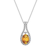 This Citrine and Lab Diamond Necklace is casted in Palladium. This Women’s Halo necklace features exceptionally fine gemstones, on par with those found in the world's most exclusive boutiques and among the top 10% available globally. Teardrop-shaped Pendant Featuring A Prominent Oval Center Stone Surrounded By A Halo Of Smaller Round Stones. The Elegant Design Is Further Enhanced By Delicate Stone Accents Along The Double Row Bail. This necklace comes with a complimentary 18-inch chain. Enjoy the confidence of our 30-day, stress-free return policy—with return shipping fully covered. Each piece is also accompanied by a Lifetime Warranty, ensuring lasting beauty and peace of mind.