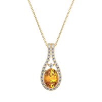 This Citrine and Lab Diamond Necklace is casted in 18k Yellow Gold. This Women’s Halo necklace features exceptionally fine gemstones, on par with those found in the world's most exclusive boutiques and among the top 10% available globally. Teardrop-shaped Pendant Featuring A Prominent Oval Center Stone Surrounded By A Halo Of Smaller Round Stones. The Elegant Design Is Further Enhanced By Delicate Stone Accents Along The Double Row Bail. This necklace comes with a complimentary 18-inch chain. Enjoy the confidence of our 30-day, stress-free return policy—with return shipping fully covered. Each piece is also accompanied by a Lifetime Warranty, ensuring lasting beauty and peace of mind.