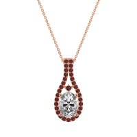 This Diamond and Ruby Necklace is casted in 14K Rose Gold. This Women’s Halo necklace features exceptionally fine gemstones, on par with those found in the world's most exclusive boutiques and among the top 10% available globally. Teardrop-shaped Pendant Featuring A Prominent Oval Center Stone Surrounded By A Halo Of Smaller Round Stones. The Elegant Design Is Further Enhanced By Delicate Stone Accents Along The Double Row Bail. This necklace comes with a complimentary 18-inch chain. Enjoy the confidence of our 30-day, stress-free return policy—with return shipping fully covered. Each piece is also accompanied by a Lifetime Warranty, ensuring lasting beauty and peace of mind.