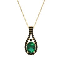 This Emerald and Black Onyx Necklace is casted in 14k Yellow Gold. This Women’s Halo necklace features exceptionally fine gemstones, on par with those found in the world's most exclusive boutiques and among the top 10% available globally. Teardrop-shaped Pendant Featuring A Prominent Oval Center Stone Surrounded By A Halo Of Smaller Round Stones. The Elegant Design Is Further Enhanced By Delicate Stone Accents Along The Double Row Bail. This necklace comes with a complimentary 18-inch chain. Enjoy the confidence of our 30-day, stress-free return policy—with return shipping fully covered. Each piece is also accompanied by a Lifetime Warranty, ensuring lasting beauty and peace of mind.