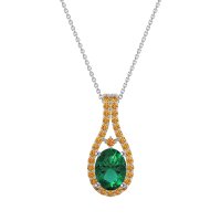 This Emerald and Citrine Necklace is casted in Palladium. This Women’s Halo necklace features exceptionally fine gemstones, on par with those found in the world's most exclusive boutiques and among the top 10% available globally. Teardrop-shaped Pendant Featuring A Prominent Oval Center Stone Surrounded By A Halo Of Smaller Round Stones. The Elegant Design Is Further Enhanced By Delicate Stone Accents Along The Double Row Bail. This necklace comes with a complimentary 18-inch chain. Enjoy the confidence of our 30-day, stress-free return policy—with return shipping fully covered. Each piece is also accompanied by a Lifetime Warranty, ensuring lasting beauty and peace of mind.