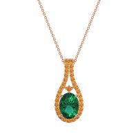 This Emerald and Citrine Necklace is casted in 18K Rose Gold. This Women’s Halo necklace features exceptionally fine gemstones, on par with those found in the world's most exclusive boutiques and among the top 10% available globally. Teardrop-shaped Pendant Featuring A Prominent Oval Center Stone Surrounded By A Halo Of Smaller Round Stones. The Elegant Design Is Further Enhanced By Delicate Stone Accents Along The Double Row Bail. This necklace comes with a complimentary 18-inch chain. Enjoy the confidence of our 30-day, stress-free return policy—with return shipping fully covered. Each piece is also accompanied by a Lifetime Warranty, ensuring lasting beauty and peace of mind.