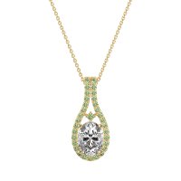 This Lab Diamond and Peridot Necklace is casted in 14k Yellow Gold. This Women’s Halo necklace features exceptionally fine gemstones, on par with those found in the world's most exclusive boutiques and among the top 10% available globally. Teardrop-shaped Pendant Featuring A Prominent Oval Center Stone Surrounded By A Halo Of Smaller Round Stones. The Elegant Design Is Further Enhanced By Delicate Stone Accents Along The Double Row Bail. This necklace comes with a complimentary 18-inch chain. Enjoy the confidence of our 30-day, stress-free return policy—with return shipping fully covered. Each piece is also accompanied by a Lifetime Warranty, ensuring lasting beauty and peace of mind.
