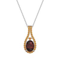 This Lab Ruby and Citrine Necklace is casted in Palladium. This Women’s Halo necklace features exceptionally fine gemstones, on par with those found in the world's most exclusive boutiques and among the top 10% available globally. Teardrop-shaped Pendant Featuring A Prominent Oval Center Stone Surrounded By A Halo Of Smaller Round Stones. The Elegant Design Is Further Enhanced By Delicate Stone Accents Along The Double Row Bail. This necklace comes with a complimentary 18-inch chain. Enjoy the confidence of our 30-day, stress-free return policy—with return shipping fully covered. Each piece is also accompanied by a Lifetime Warranty, ensuring lasting beauty and peace of mind.