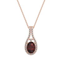 This Lab Ruby and Lab Diamond Necklace is casted in 18K Rose Gold. This Women’s Halo necklace features exceptionally fine gemstones, on par with those found in the world's most exclusive boutiques and among the top 10% available globally. Teardrop-shaped Pendant Featuring A Prominent Oval Center Stone Surrounded By A Halo Of Smaller Round Stones. The Elegant Design Is Further Enhanced By Delicate Stone Accents Along The Double Row Bail. This necklace comes with a complimentary 18-inch chain. Enjoy the confidence of our 30-day, stress-free return policy—with return shipping fully covered. Each piece is also accompanied by a Lifetime Warranty, ensuring lasting beauty and peace of mind.