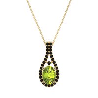 This Peridot and Black Onyx Necklace is casted in 14k Yellow Gold. This Women’s Halo necklace features exceptionally fine gemstones, on par with those found in the world's most exclusive boutiques and among the top 10% available globally. Teardrop-shaped Pendant Featuring A Prominent Oval Center Stone Surrounded By A Halo Of Smaller Round Stones. The Elegant Design Is Further Enhanced By Delicate Stone Accents Along The Double Row Bail. This necklace comes with a complimentary 18-inch chain. Enjoy the confidence of our 30-day, stress-free return policy—with return shipping fully covered. Each piece is also accompanied by a Lifetime Warranty, ensuring lasting beauty and peace of mind.