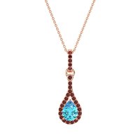 This Swiss Blue Topaz and Ruby Necklace is casted in 14K Rose Gold. This Women’s Fashion necklace features exceptionally fine gemstones, on par with those found in the world's most exclusive boutiques and among the top 10% available globally. Dazzling Pendant Featuring A Pear-shaped Center Stone Embraced By A Halo Of Smaller Stones. One Additional Round Stone Set Atop Ascends To The Stone Set Bail, Creating A Cascade Of Sparkle. This necklace comes with a complimentary 18-inch chain. Enjoy the confidence of our 30-day, stress-free return policy—with return shipping fully covered. Each piece is also accompanied by a Lifetime Warranty, ensuring lasting beauty and peace of mind.